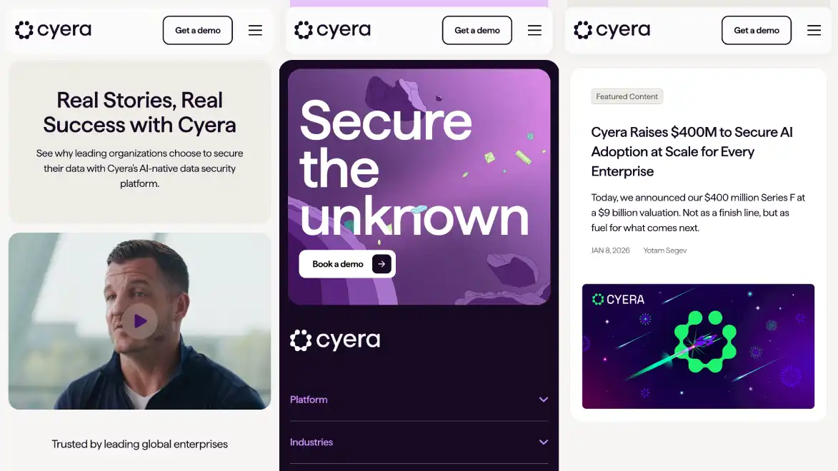We've supported Cyera through two full rebrands. Each time, we optimized assets, coordinated with design vendors, and developed best practices that kept the brand vision intact without sacrificing page performance. The approach is systematic – we protect what works while evolving what could be improved.